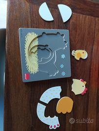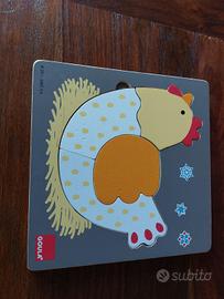 puzzle goula su 3 livelli , che rappresentano gallina pulcino e uovo