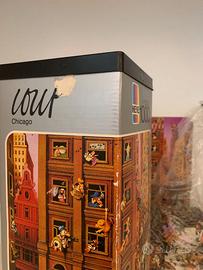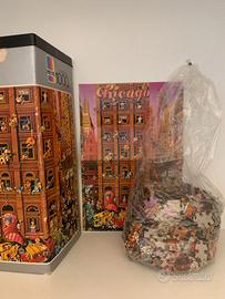 Puzzle Heye da 1000 pezzi, raffigurante una scena di Chicago con un'illustrazione dettagliata.