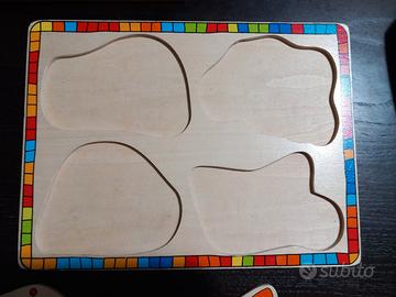 puzzle in legno ad incastro per bimbi. usato ma in buone condizioni. totale 8pezzi + tabellone. 12m+