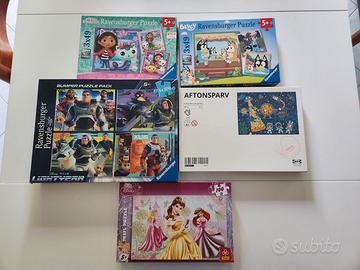 Vendo puzzle misti per bimbi a 2€ l'uno. Sono tutti completi, nessun pezzo mancante ma essendo stati usati da bimbi alcune scatole sono danneggiate.