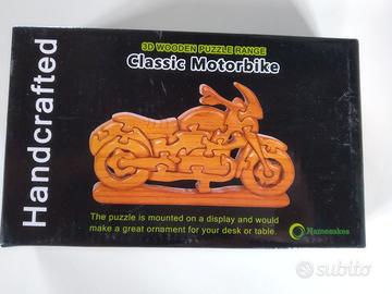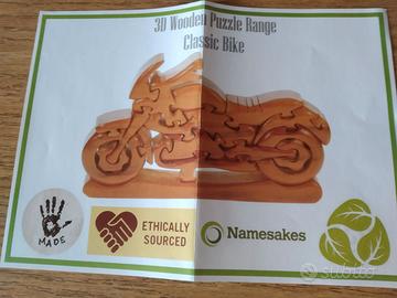 Vendo puzzle 3D marca Namesakes fatto a mano formato da blocchetti in legno ad incastro, soggetto Classic Motorbike, nella sua confezione originale.