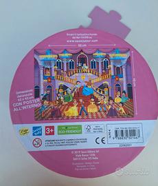 puzzle principessa bimba 3 anni pezzi grandi e fattibile anche per i più piccoli, bella scatola rotonda. montato una volta NB Non c'è il libretto associato