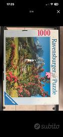 Puzzle Ravensburger1000 pezzi con paesaggio montagna. In perfette condizioni la parte del disegno .Sul retro ,alcune tessere, mostrano qualche macchia, poiché conservato in cantina.
