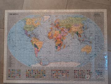 Puzzle Ravensburger 1000 pezzi "The World" (mappamondo politico). Dimensioni ca. 70x50 cm. Sarà consegnato intero, su base di cartoncino, così da essere visibile la presenza di tutti i pezzi. No spedizioni, solo consegno presso Roveredo in Piano (PN) o zone limitrofe.