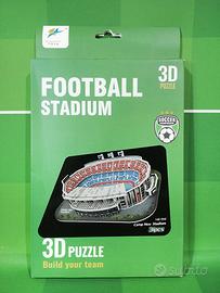 Puzzle stadio 3D Camp Nou Barcellona. Misure del modellino assemblato: 16cm x 13cm. Materiale: cartone. Composto da: 31 pezzi. Montaggio fai da te che non richiede utilizzo di colla e forbici: la struttura del puzzle si assembla pezzo per pezzo, collegandoli tra loro. Età: +3 (non adatto a bambini di età inferiore a 36 mesi. Piccole parti. Rischio di soffocamento). Nuovo da magazzino, sigillato nella sua confezione originale e mai aperto.
