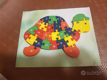 Stimola i bambini a ricordare numeri e alfabeto per completare il puzzle e ricostruire la tartaruga.