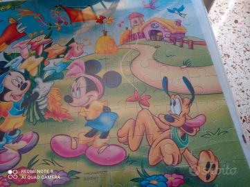 Puzzle Topolino già composto misura 50x70 cm. con cornicetta (opzionale compresa nel prezzo) semplice il frontespizio della cornice è in plastica dura un po' spaccato alla base destra ma quasi invisibile.
