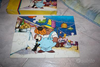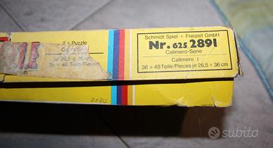 condizioni discrete: la scatola è molto rovinata, In uno dei due puzzle mancano due pezzi.