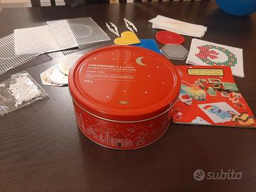 Vendo scatola di perline da stirare Pyssla con accessori vari per creazioni come da foto. Le perline sono circa 1 kg (equivalente a circa15000 perline) in scatola di metallo biscotti Ikea. euro 10. Disponibile a spedizione e su Roma anche a ritiro manuale.