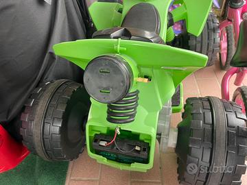Quad Bambini con batteria sostituita da poco, perfettamente funzionante manca solo lo sportellino che chiude la batteria dietro come si vede dalla foto. Va bene dai due anni ai 4-5
