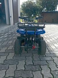 Quad con motore elettrico, freni a disco, regolazione velocità, con gomme e una batteria da sostituire.