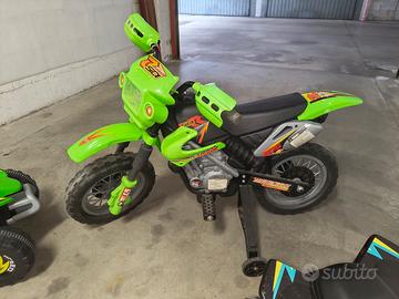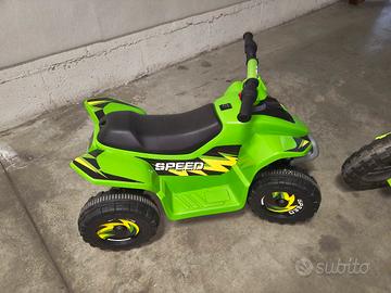 Causa inutilizzo, vendo splendidi quad elettrici ideale per bambini fino ai 5 anni (uno nero e uno verde) Sono stati usati pochissimo, si presentano in condizioni eccellenti e perfettamente funzionanti. Completo di caricabatterie dedicato. Un regalo perfetto per il divertimento dei vostri piccoli avventurieri! Preferibile ritiro di persona. Nel pacchetto, aggiungo una splendida moto elettrica ideale per bambini fino ai 6 anni. È stata usata poco, si presenta in condizioni buone e perfettamente funzionante. Completo di caricabatterie dedicato.