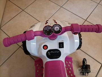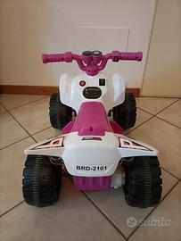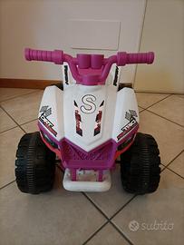 quad a batteria ricaricabile, avanti indietro e musica + presa USB per ascoltare musica, usato pochissimo, batteria ok , lunghezza 70 cm larghezza 43 seduta 28 , per bambini di circa 3/5 anni