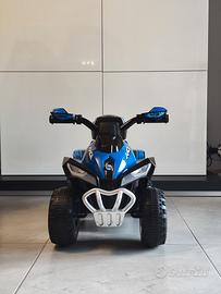 Vendo causa inutilizzo quad per bambini in perfette condizioni. Mai utilizzato al di fuori di casa (mai in esterno, parco strada etc.). Pacco batteria e alimentatore appena sostituiti (quindi autonomia di carica pari al nuovo di fabbrica). Caratteristiche Tecniche: Materiale: PP, Metallo Dimensione generale: 78.5L x 40.5P x 46Acm Dimensione scatola: 19L x 18P x 13Acm Caricabatterie: 6V, 500MA Batteria ricaricabile: 6V, 4.5Ah Tempo di guida: fino a 45min da una carica completa (a seconda del tipo di utilizzo) Retromarcia Capacità di peso: 20kg Acquistato 90€, vendo al prezzo di realizzo di 40€, compresi pacco batteria e alimentatore nuovi. Preferibile ritiro a mano a Palermo.