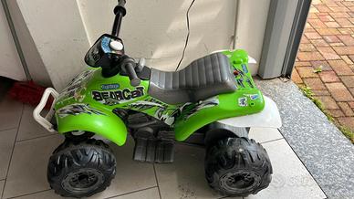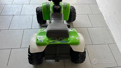 Quad peg perego bearcat 6v usato ma ancora in buone condizioni. Funziona perfettamente. L’unica cosa che segnalo è la possibilità in futuro di sostituire le due ruote posteriori, la posteriore sinistra è la ruora motrice ed è quella che si “consuma”maggiormente. Attualmente funziona regolarmente e fa ancora grip.