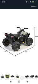 vendo quad per bambini, portata fino a 30 kg. usato poco ma con batteria quasi nuova, presenta soltanto le ruote un po' consumate.