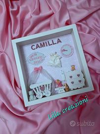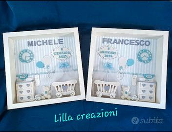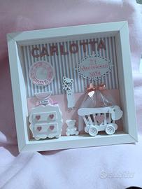 Quadretti nascita personalirealizzati, realizzati su ordinazione. misurano cm 27×27 con possibilità di essere appesi o semplicemente appoggiati. la maggior parte del materiale utilizzato è legno