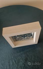 Quadretto in legno, vetro e laminato argento. Con scatola originale, regalo ideale per cresime, comunioni e battesimi. Dimensioni 12x12 cm., profondità 3 cm.
