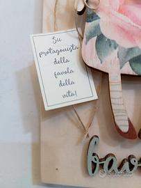 Bellissimo quadretto in legno con bimba a rilievo e frase. Dimensioni 19.5x10.5 Marca: Beccalli For life