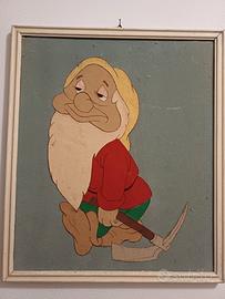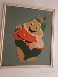 Serie di quadri x stanza dei bambini con Biancaneve e 7 quadretti dei sette nani. In feltro con cornice bianca. Fine anni '60. Misure: Biancaneve 73x53 cm, nani 32x37.5 cm. Totale 8 quadri.