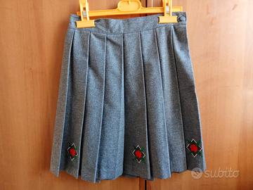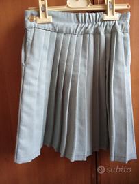 Vendo quattro gonne a pieghe per bambine, due blu scuro, una verde e una grigia. Una leggera (ultima in foto), tre più pesanti. Taglia 10-11, la verde 34. Girovita circa 32 cm, lunghezza circa 43 cm. Ottimo stato. Vendibili anche separatamente