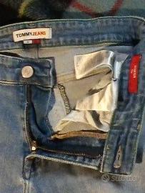 Quattro jeans denim, per bambino-ragazzo -nuovi- 1) Jeans marca PiazzaItalia - NUOVI - per bambino anni 8-9 circa Misura 8-9 . cm. 66 girovita; cm. 60 gamba al cavallo (con 2 cm. di bordo per eventuali allungamenti. 6 tasche ( di cui 2 taschini anteriori), chiusura cerniera met. Denim classico morbido di medio spessore, cuciture oro, fregi posteriori rossi. Rivettati, lavati, e "ripped" (graffi e 2 strappi su anteriore gambe ) eur 18 tratt. ........................ 2) Jeans marca TOMMY - come NUOVI - indossati solo 2 volte ! misura W 30 L 32 (in realtà L28) (circa la nostra taglia 44 ) 5 tasche rivettato. Medium Washed con voluto e articolato "effetto usato": blando sul davanti con schiarimento zona cosce, mentre sul retro non c'è schiarimento, ma una zona "ripped" di graffiatura sotto la cintura e tra le due tasche, con apposizione di fabbrica di 2 toppe di rinforzo interno che lasciano volutamente un piccolo strappo bloccato al centro tra le due. Vedi anche foto. Cotone 99% Elastane 1% lunghezza totale cm. 94 - vita cm. 78 - gamba 70 eur 18 tratt. ......................... 3) Jeans marca BENETTON "eco recycle " -NUOVI- 2 tasche posteriori per bambino di circa 11-12 anni "2XL" . Light washed con leggero schiarimento anteriore zona cosce. Modello con in vita elastico con asole interno , regolabile con 2 bottoni. Patta e tasche anteriori simulate, con bottone metallico fisso. Cotone 97% Elastan 3% lungh. tot. 90 - vita 70 - gamba 72 eur 12 tratt. .................... 4) Jeans marca "Stradivarius" -NUOVI- denim classico effetto vissuto con diverse graffiature Taglia 42 : lungh. tot. 92 - vita 78 - gamba 67 Cotone 95% - Elastan 5% eur 18 tratt. ..................... Sconti con acquisti multipli e/o anche su altri miei annunci. Per esempio: SCONTO "3 x 2" Visione e consegna gratuita in Torino, oppure spedizione.