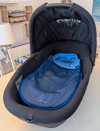 Navicella omologata Quinny completa di tutti gli accessori originali, con sacco extra, completa di attacchi, copri e cuscino, tutto in buone condizioni.