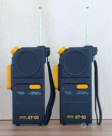 Radioline ricetrasmittenti walkie talkie. Nuove, mai utilizzate, confezione perfetta. Funzionamento 2 batterie 9V (non comprese)