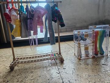 Vendo Rainbow High originale completa di armadio, vestiti, mollette e scarpe in contenitori marcati Rainbow High.
