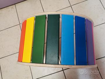 La Rocker Rainbow in legno è un dondolo multicolore e multifunzionale, stimola i sensi, rinforza i muscoli, sviluppa l’immaginazione e l'equilibrio.