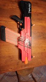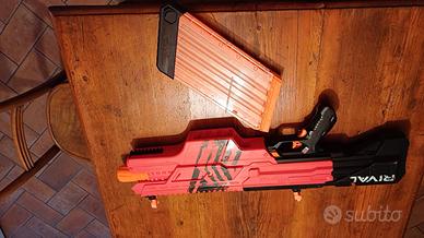 Vendo Raival Nerf, dotata di caricatore da 40 colpi (attenzione non sono quelli blu ma sono delle palline gialle di gomma molto molli), elettrica ricaricabile con le pile e molto potente.