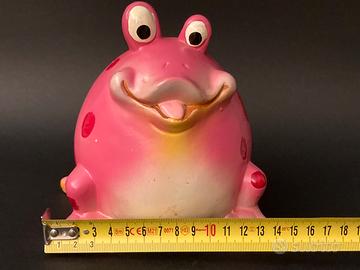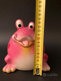 Rana salvadanaio per bambini con tappo in gomma sul fondo per svuotamento.