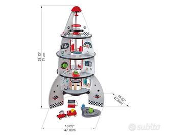 Razzo spaziale legno a 4 piani con accessori.