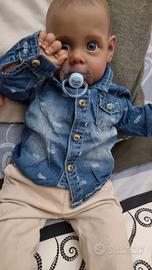 Bellissima reborn nuova , corpo in stoffa appesantito e arti in vinile siliconico. Peso 4,100 cm 62 veste 3-6 mesi . Arriva con abbigliamento in foto e un'altro vestitino a mia scelta .