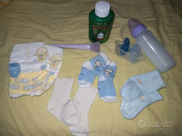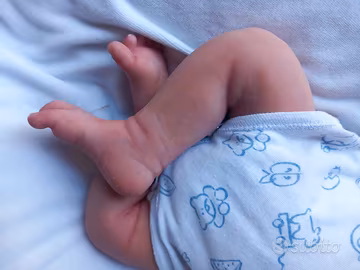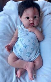 Bimbo rinato maschio interamente in silicone platino morbidissimo, di 48 cm e di 3.350 kg circa, dipinto con pigmenti siliconici strato su strato, con rossori, venature, graffietti, unghie e sfumature estremamente verosimili, sigillato con polvere opacizzante professionale siliconica, radicato con mohair premium di qualità castano, occhi di vetro solido, bocca aperta con gengive e lingua. Accetta il ciuccio vero ed una bottiglia con tettarella 0-3. Veste una taglia 0-1 mese. Può fare il bagnetto completo. Arriverà confezionato con cura con un tutto quel che serve per un'esperienza di role play completa: un corredino estivo ed uno invernale degno di questa meraviglia, con biancheria intima e pannolini di ricambio inclusi, i suoi ciucci con la loro scatolina, la catenella ferma-ciuccio, il suo pupazzetto e una bottiglia con tettarella sigillata e latte finto per simulazione allattamento, e borotalco e pennello con setole morbide per il suo mantenimento. Si consiglia di sistemare i capelli molto delicatamente con le mani o con spazzolino da denti con setole morbide o spazzola per neonati. Non strattonare gli arti. Maneggiare come se fosse un vero neonato. Sconsigliato per i bambini sotto i tre anni. Il prezzo è comprensivo del reborn e del suo ricco corredo (vedi ultime foto).