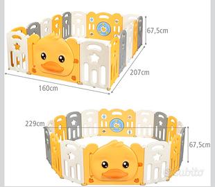 Vendo per inutilizzo recinto per bambini Costway. Foto dal sito in quanto già riposto nello scatolo in garage. Come nuovo, da sostituire solamente il bioadesivo sul becco in gomma sonoro della paperetta. Pagato 160€. Solo ritiro a mano, zona Ancona.
