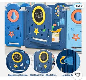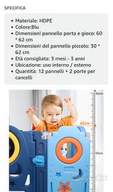 Vendo recinto gioco per bambini in totale sono 16 pannelli + 2 porte . Usato ma in buone condizioni Vendita solo con ritiro in zona