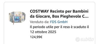 recinto per bambini usato veramente poco e pari al nuovo senza alcun danno o usura. configurabile a piacimento provvisto di porta e giochi incorporati.
