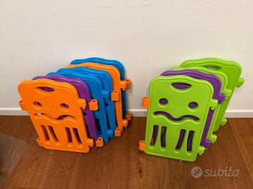 Vendo come da foto recinzione Box bambini composto da 10 pezzi colorati componibili, un pezzo componibile con cancello ed un pezzo componibile con giochi. Solo ritiro