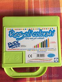 Regoli Didattici Pool Over - 186 regal colorati (10 colori, 10 lunghezze). Gioco didattico per calcolo e scomposizione del calcolo in orizzontale e verticale. Marchiato CE ed in uso presso le Scuole Primarie di Primo Grado.