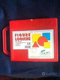1 confezione di figure logiche: 48 pezzi, 4 figure geometriche,2 grandezze,3 colori,2 spessori.