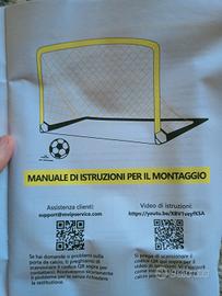 vendo per doppio regalo rete da calcio ideale per l'esterno, misure 152 x 10 cm, colori nero e arancio. Nella confezione originale! si monta in 5 minuti, ha la struttura in acciaio ma è.leggera, è dotata di picchetti per poterla fissare al terreno, ed è pieghevole! È un ottimo gioco per bambini da 3 a 100 anni 😆