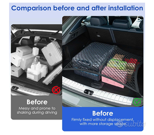 Ideale per organizzare bagagli, spesa, accessori, oggetti per animali (perfetta anche se viaggi con il cane 🐕). Mantiene tutto fermo evitando che gli oggetti scivolino o si rovinino durante la guida.