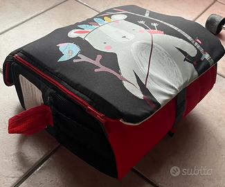 Rialzo comodo e leggero da portare sempre con sé. Si può portare come una borsa a tracolla. Ha qualche scomparto dove poter mettere dei piccoli accessori (es. biberon, pannolini ecc.).