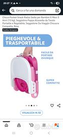 COMPATTO E LEGGERO: Pocket Snack è il rialzo sedia più compatto di Chicco, super leggero e facilmente trasportabile, grazie alla maniglia integrata; pesa solo 2 kg
