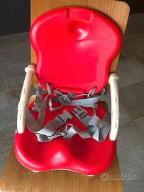 Vendo rialzo per sedia della CAM, di colore rosso, comprensivo di vassoio per la pappa e imbottitura leggera. Il seggiolino è dotato di cinture per fissaggio alla sedia e cintura di sicurezza per il bambino; può essere regolato a 3 altezze diverse e chiuso completamente per il trasporto e l'utilizzo fuori casa.