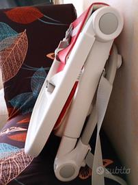 Rialzo sedia Foppapedretti pratico e facile da trasportare. -seduta imbottita rossa -vassoio bianco removibile - cinture di sicurezza