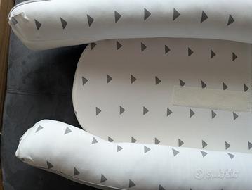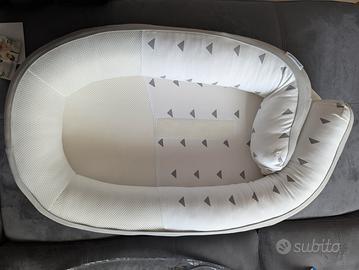 Vendo riduttore Doomoo Cocoon in condizioni eccellenti, colore bianco, grigio. È stato un alleato fondamentale per i primi mesi, perfetto per far dormire il neonato in totale sicurezza e comfort. Caratteristiche principali: Materiali di alta qualità: Realizzato in cotone organico traspirante, delicatissimo sulla pelle. Sicurezza: Dotato di una cintura di sicurezza amovibile per mantenere il bimbo in posizione supina. Evolutivo: La parte inferiore si apre per seguire la crescita del bambino. Igiene: Completamente sfoderabile e lavabile in lavatrice. Stato del prodotto: Usato poco, non presenta macchie solo una sbiaditura nella parte posteriore. Conservato nella sua confezione originale. posso spedire ma le dimensioni superano i limiti di tuttosubito