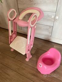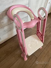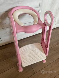 Riduttore Water WC Per Bambini Cuscino Plastica Scala Pieghevole Pedana Antiscivolo Altezza Regolabile Sedile Per Vaso Per Bimbi da 1 a 6 Anni Rosa