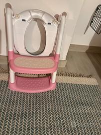Vendo riduttore WC per bambini con scaletta, colori rosa/bianco/grigio, ideale per bambini fino a 3 anni.